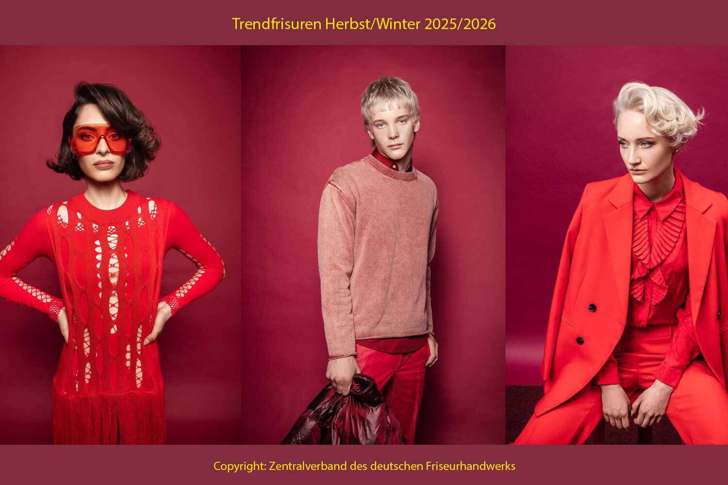 Mit der H|MAG Trendkollektion Herbst/Winter 2025/26 INFRAROUGE präsentiert das Modeteam des Zentralverbands des Deutschen Friseurhandwerks (ZV) kraftvolle, sinnliche und elegante Frisurenlooks, die Selbstbewusstsein und Persönlichkeit ausstrahlen.